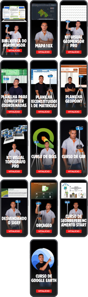 Afinal, são 13 ferramentas profissionais, cursos completos, planilhas automáticas, kits visuais, modelos técnicos e sistemas que resolvem problemas reais de quem vive de topografia.